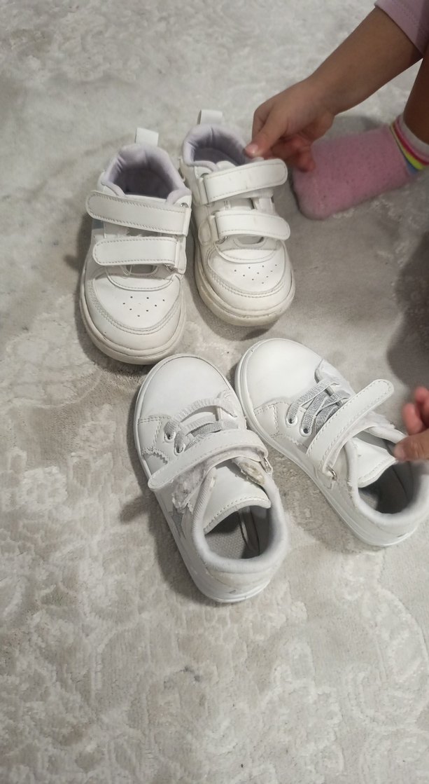 Beyaz, cırtcırtlı kayışlara sahip kız çocuk spor ayakkabısı. Kauçuk malzemeden üretilmiştir, desensiz ve günlük sokak stiline uygundur. ufak soyulma var sadece resimlerde var