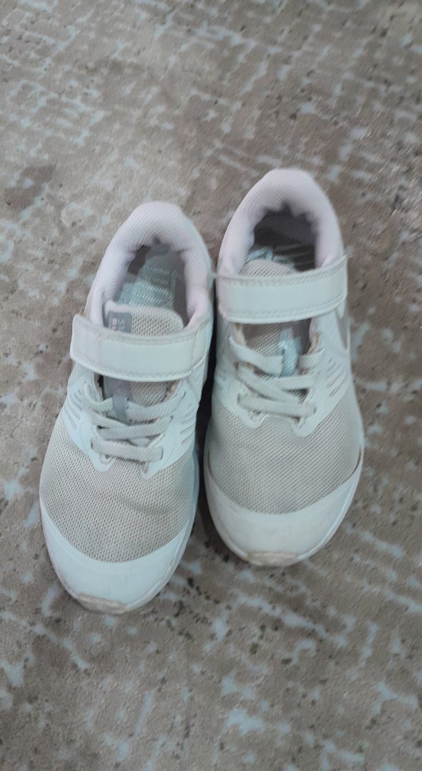 Beyaz ve gri renklerde, cırtlı bantlı kız çocuk spor ayakkabısı. Kauçuk tabanlı, düz tasarımlı ve rahat bir model.