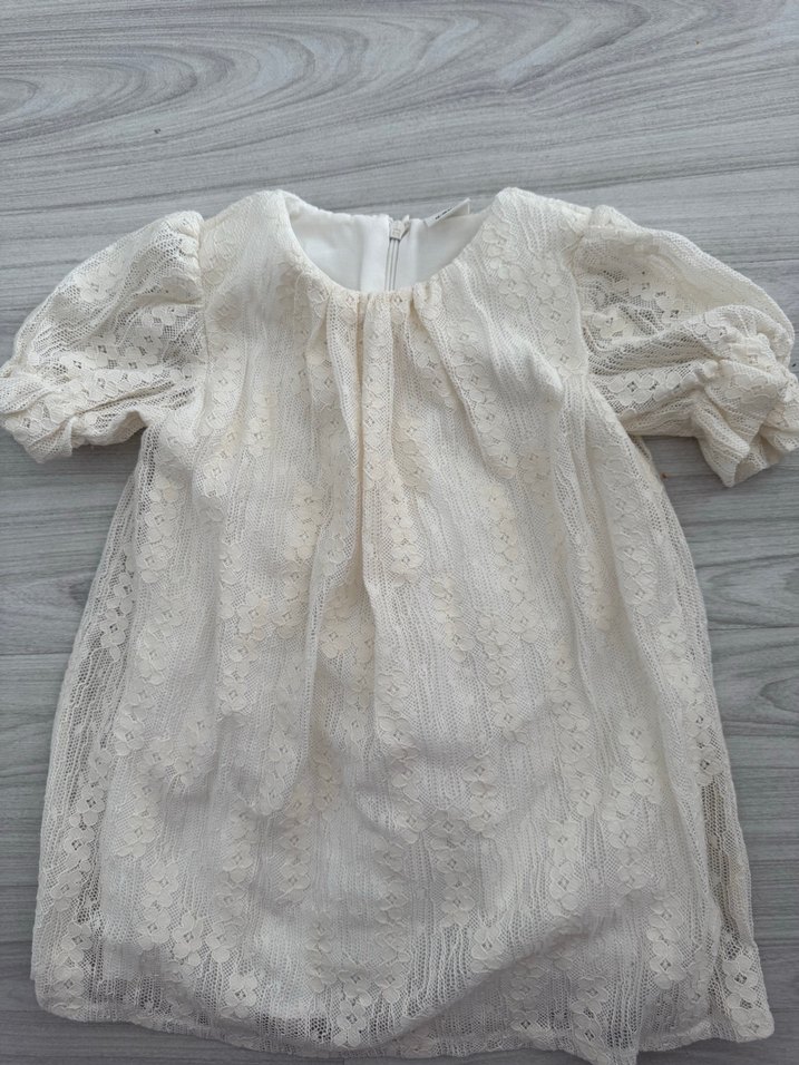 Yumuşak keten kumaştan, kısa kollu, dantel detaylı, bol kesim beyaz bohem kız çocuk elbisesi. Yuvarlak yakalı ve pastel tonlardadır. 12-18 beden. Yumuşak hiç rahatsız etmiyor. Bir kez nikahta giyildi. Herhangi bir deformesi yok.