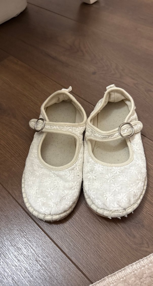 Beyaz renkli kız çocuk babet ayakkabı, dantel detayları ve tokalı kayış ile. Dayanıklı kauçuk malzemeden üretilmiştir.