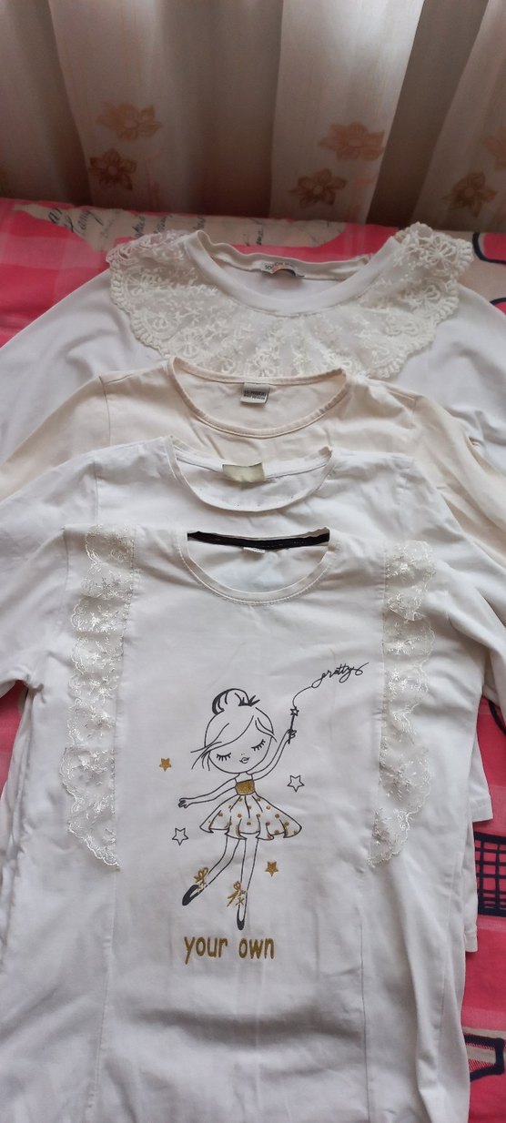 Kız Çocuk Beyaz Dantel Detaylı Nakışlı Tişört