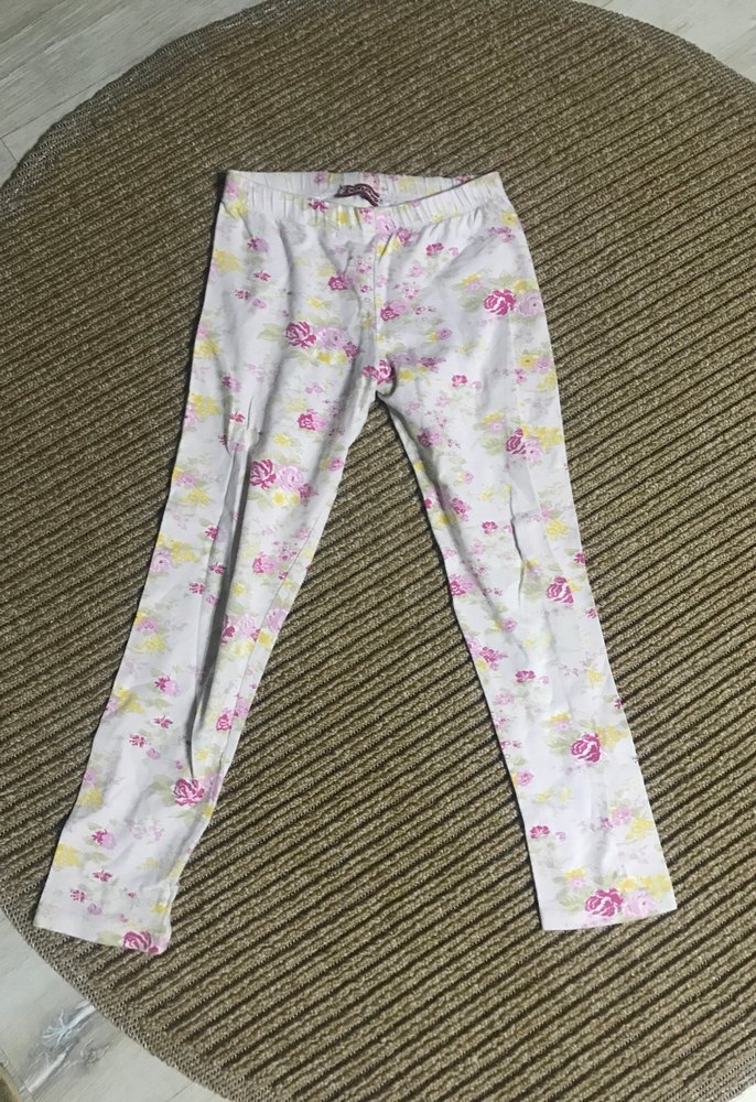 Pamuk kumaştan, pastel tonlarda çiçek desenli, dantel detaylı beyaz kız çocuk taytı. Rahat ve şık sokak stili için uygun.
