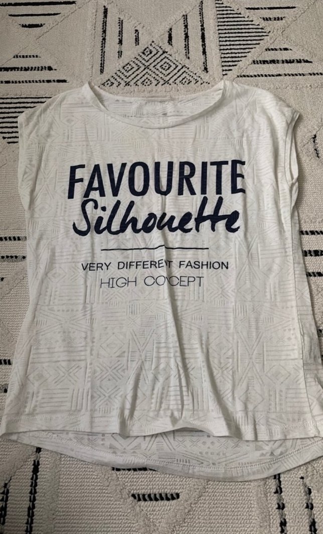 Beyaz renkli, kısa kollu, dantel detaylı kız çocuk tişörtü. Gevşek kesim ve tekne yaka tasarımıyla rahat bir kullanım sunar. Üzerinde baskılı yazılar bulunur.