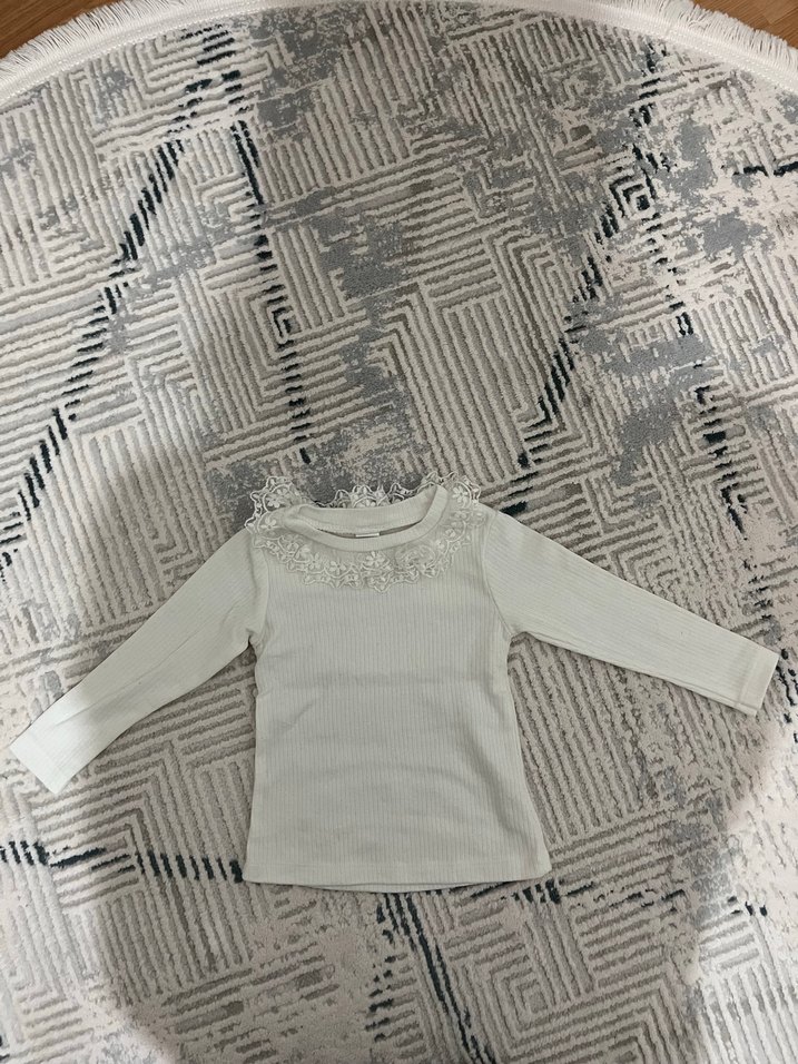 Kız Çocuk Beyaz Dantel Detaylı Uzun Kollu Bluz