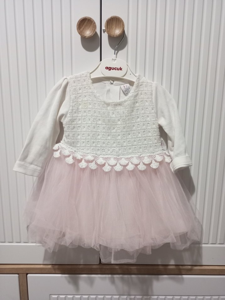 Kız Çocuk Beyaz Dantel Detaylı Uzun Kollu Elbise