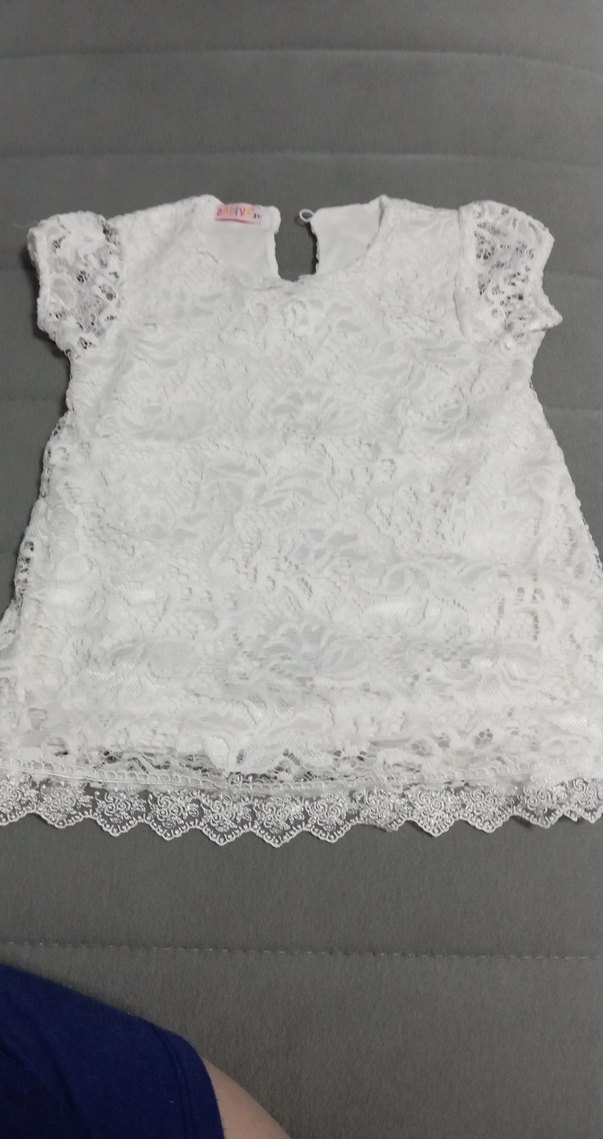 Kız Çocuk Beyaz Dantel İşlemeli Elbise