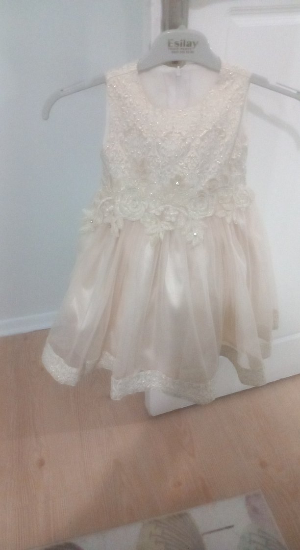 Kız Çocuk Beyaz Dantel İşlemeli Elbise