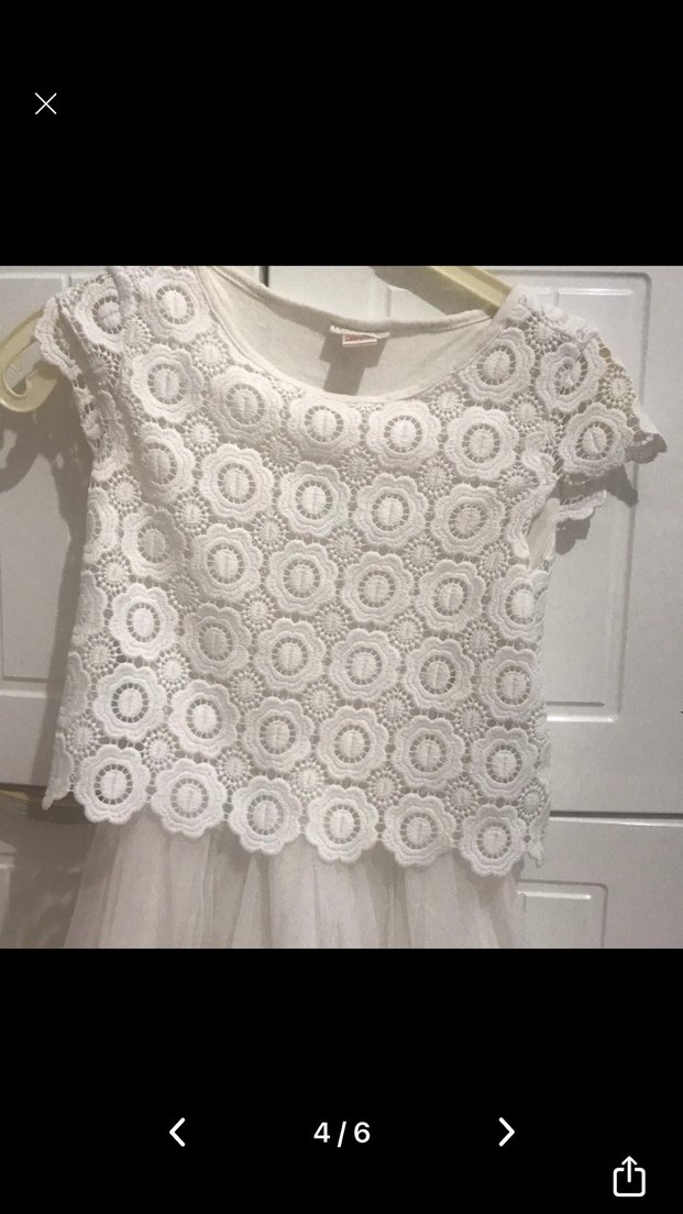 Kız çocukları için kısa kollu, yuvarlak yakalı, dantel nakışlı beyaz bohem tarzda fitted elbise. Örgü kumaş ve detaylı işlemelerle tasarlanmıştır.
