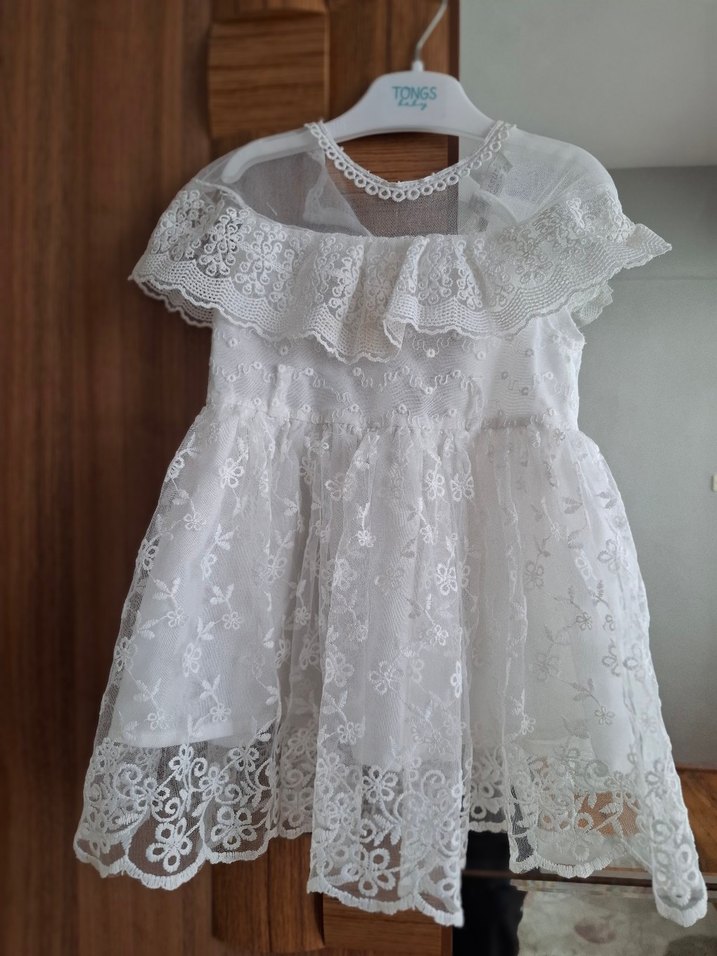 Kız Çocuk Beyaz Dantel Nakışlı Elbise