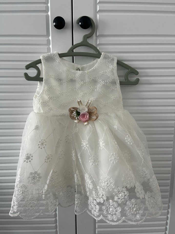 Kız Çocuk Beyaz Dantel Nakışlı Elbise