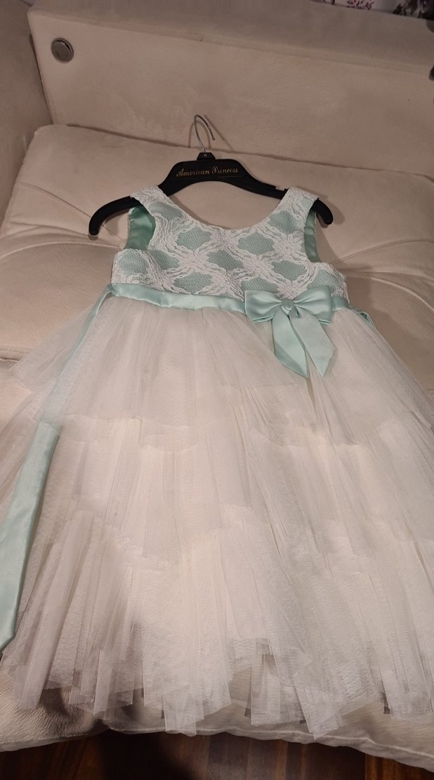 Kız çocuklar için kolsuz, işlemeli dantel detaylı, ince kemerli beyaz klasik ve modern tarzda uyumlu elbisedir. 5 yaş etiketli ama 6 _ 7 yaş da giyer