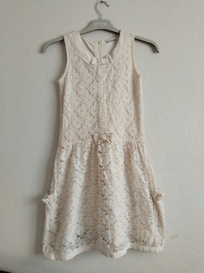 Kız Çocuk Beyaz Dantelli Kolsuz Elbise