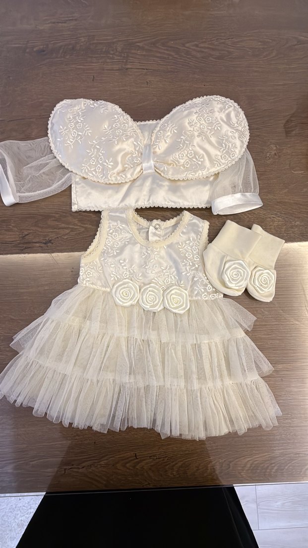 Kız Çocuk Beyaz Dantelli Nakışlı Elbise mevlid takımı