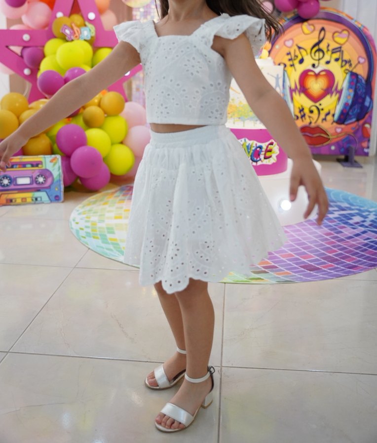 Pamuklu, nakışlı dantel detaylı, askılı kollu ve straplez yakalı rahat kesim beyaz kız çocuk takım Şortlu tertemiz severek kullandık Le mabelladan almıştık