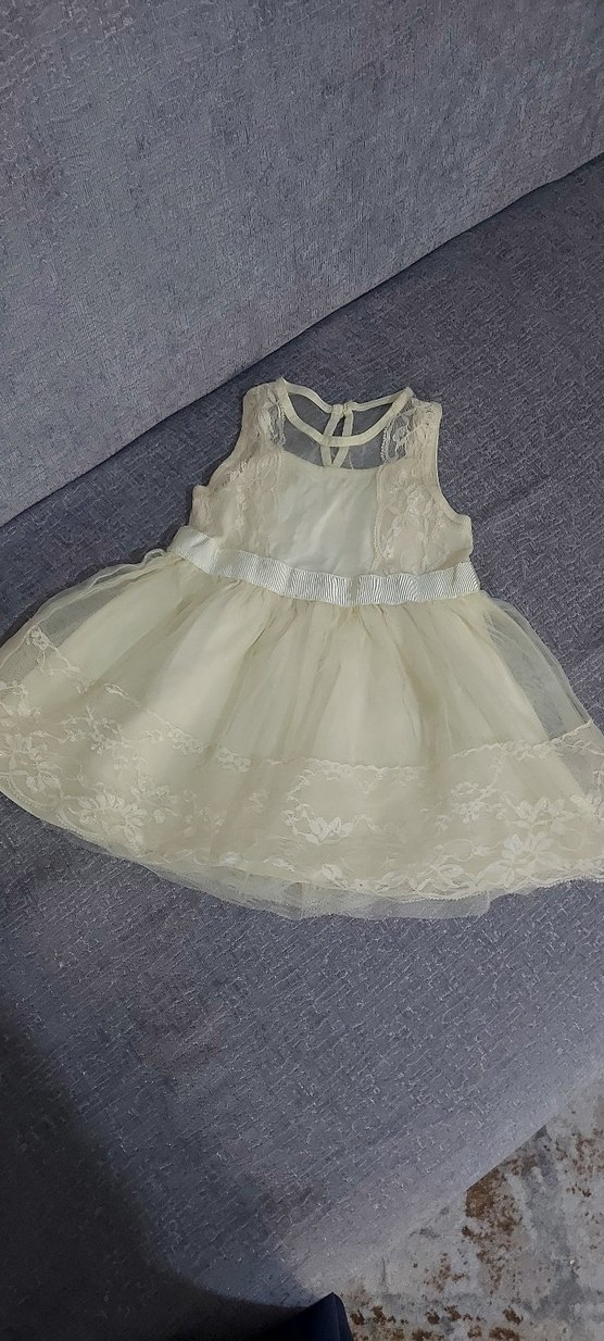 Kolsuz, straplez yakalı beyaz elbise, dantel ve nakış detaylarıyla modern klasik ve vücuda oturan kesime sahiptir. 1 defa kullanılmıştır çok iyi durumdadır