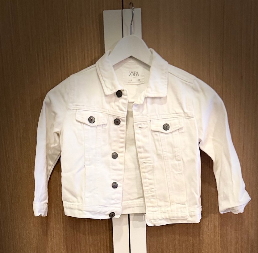 Kız çocuklar için beyaz renkli, düğmeli ön kapamalı denim ceket. Notch yakalı ve regular fit kesimlidir, desen içermez. Streetwear tarzına uygundur.