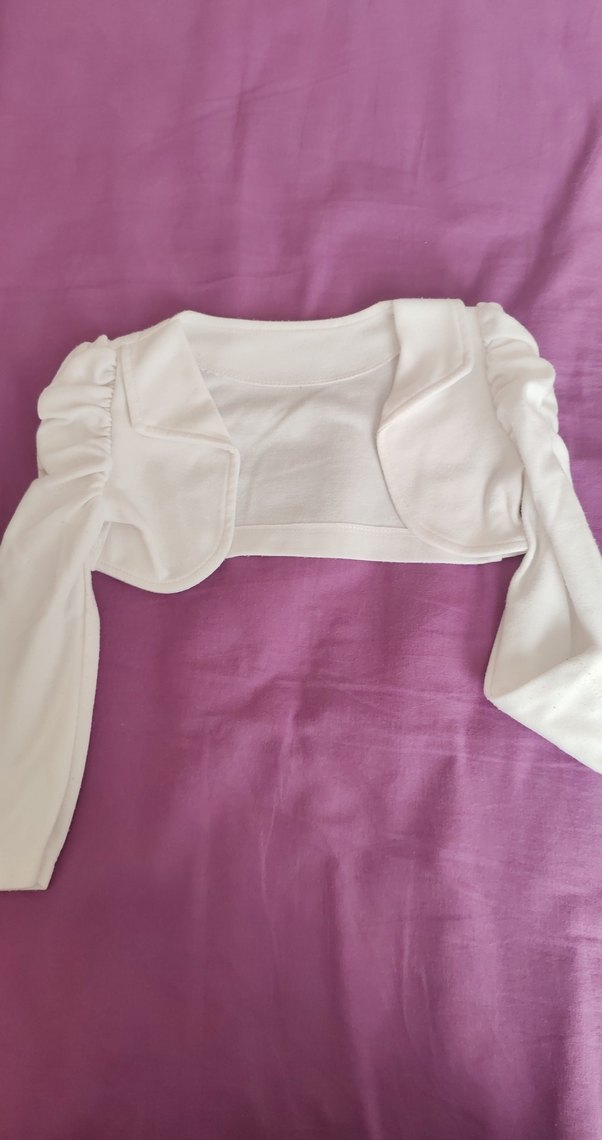 Uzun kollu, drapeli beyaz kız çocuk bolero. 2 yaş