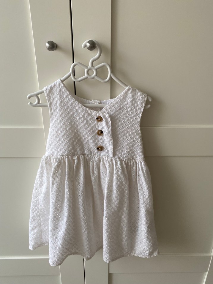 Kız Çocuk Beyaz Düğmeli Keten Elbise
