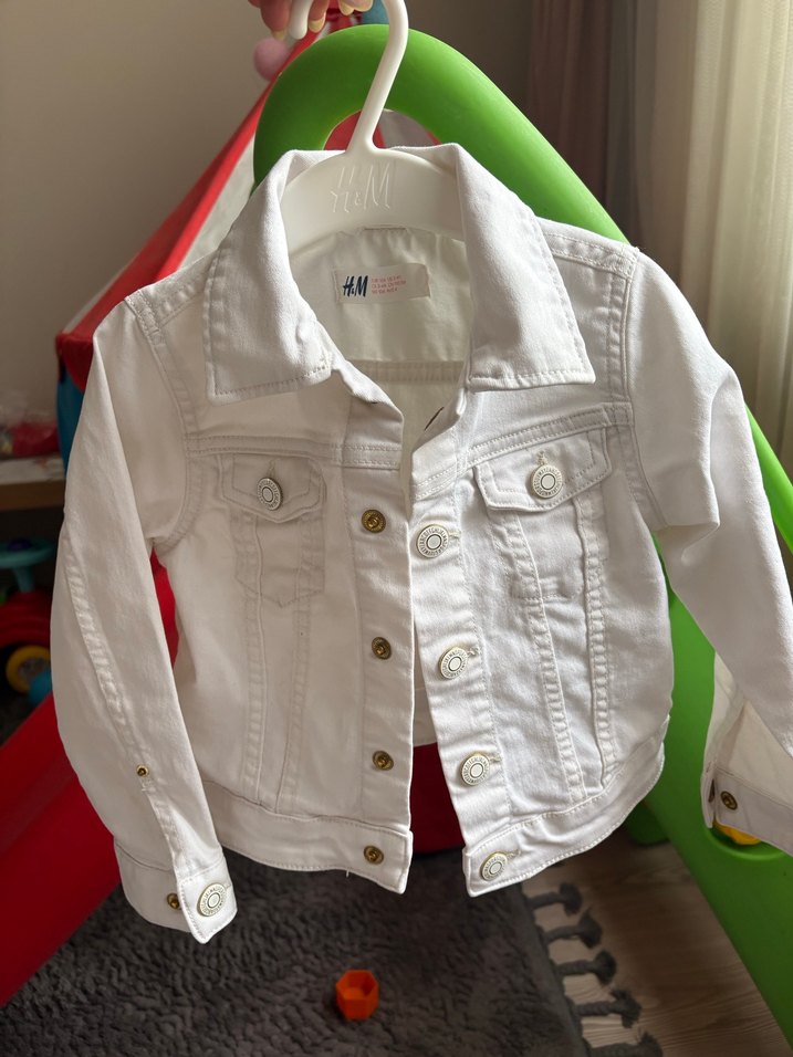 Kız Çocuk Beyaz Düğmeli kot Ceket