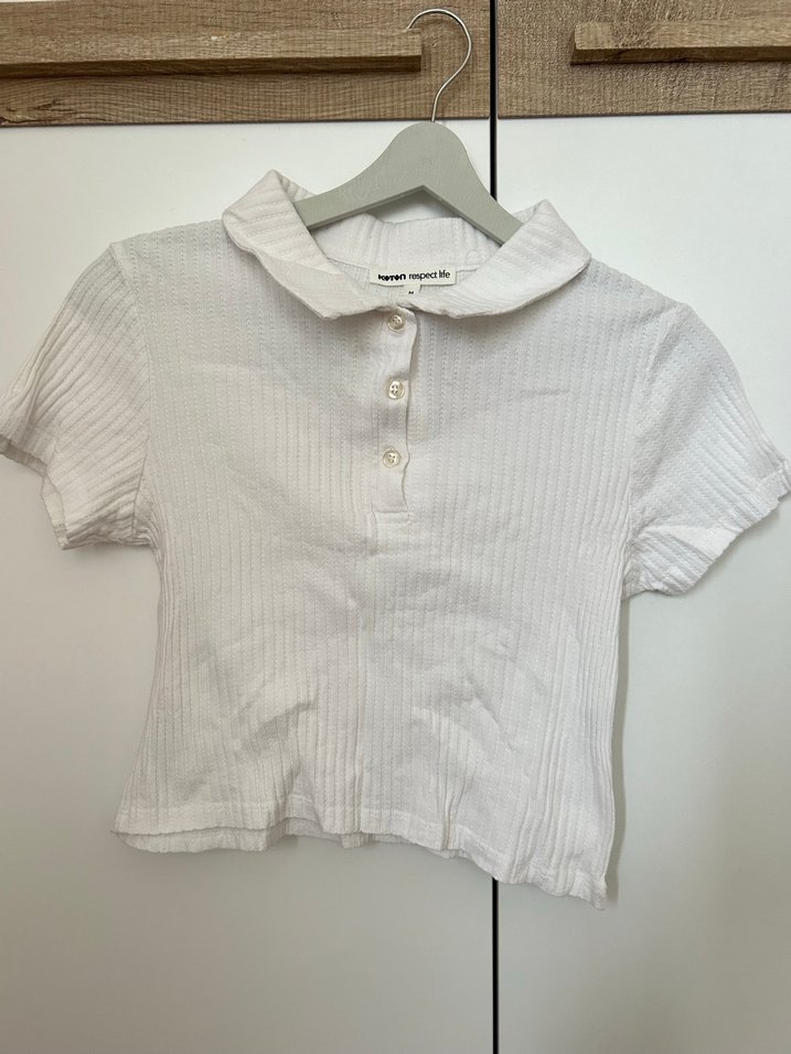 Kız Çocuk Beyaz Düğmeli Polo crop Tişört