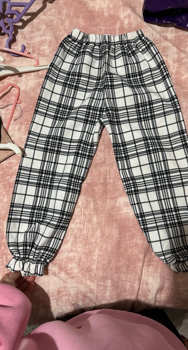 Beyaz ekose desenli, bol kesim çocuk pantolon. Pilili detaylar ve lastikli bel ile bilekler rahatlık sunar. Günlük kullanıma uygun, sokak stili rahatlığı sağlar.