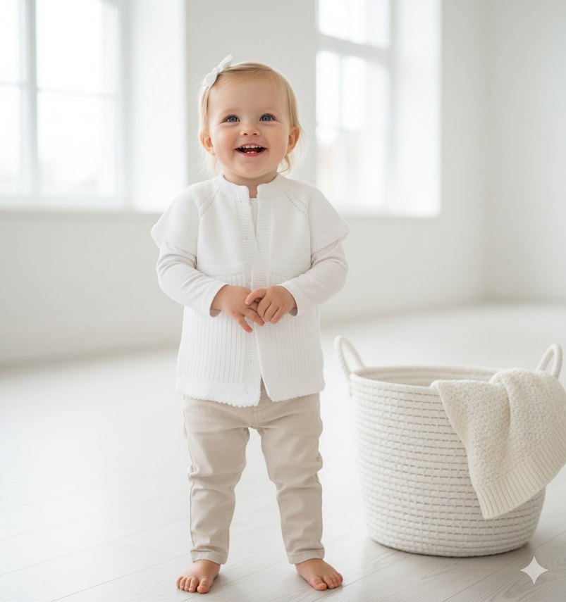 Kız Çocuk Beyaz El Örgüsü Kısa Kolu Hırka
