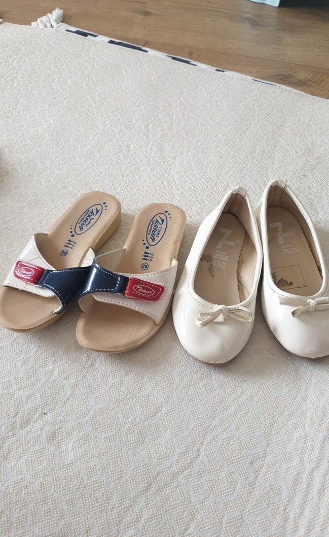 Beyaz renkli kız çocuk babet ayakkabılar elastik detaya sahiptir. Yumuşak kauçuk malzemeden yapılmış, sade ve klasik stilde. terlikler 29 numara