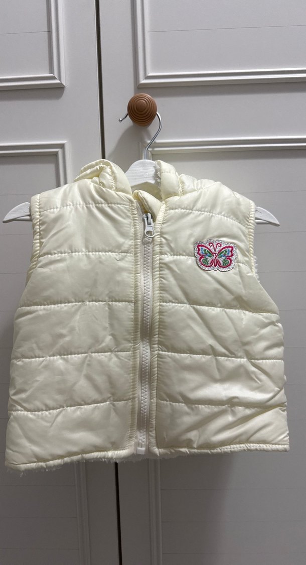 Fermuarlı, kapüşonlu, beyaz kız çocuk yeleği. Nakışlı kelebek detayı ve dar kesimi ile sokak stiline uygun, yumuşak ve sıcak kumaştan yapılmıştır.