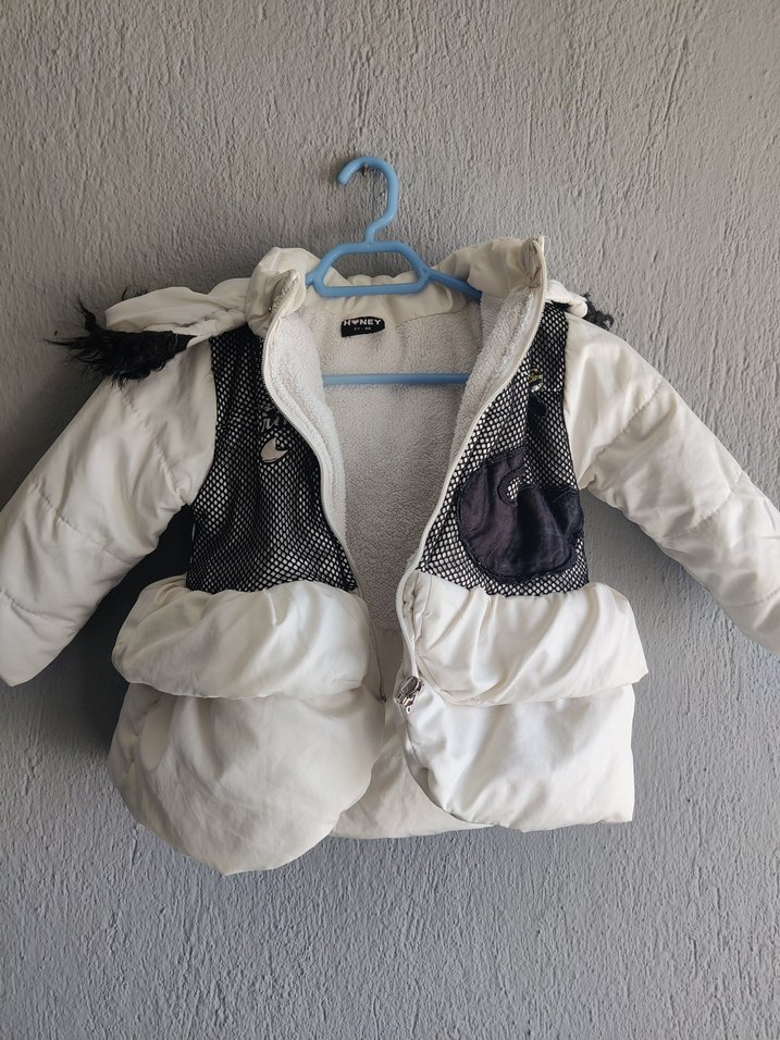 Kız çocukları için beyaz, fermuarlı, yakalı ve yumuşak kumaşlı dar kesim mont. Gri detaylar ve cep tasarımı ile streetwear tarzına uygun.
