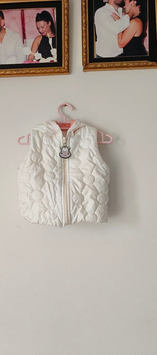 Kız çocukları için beyaz, fermuarlı, yakalı ve kolsuz yelek. kapsonly ıcı astarlu sıfır urudur