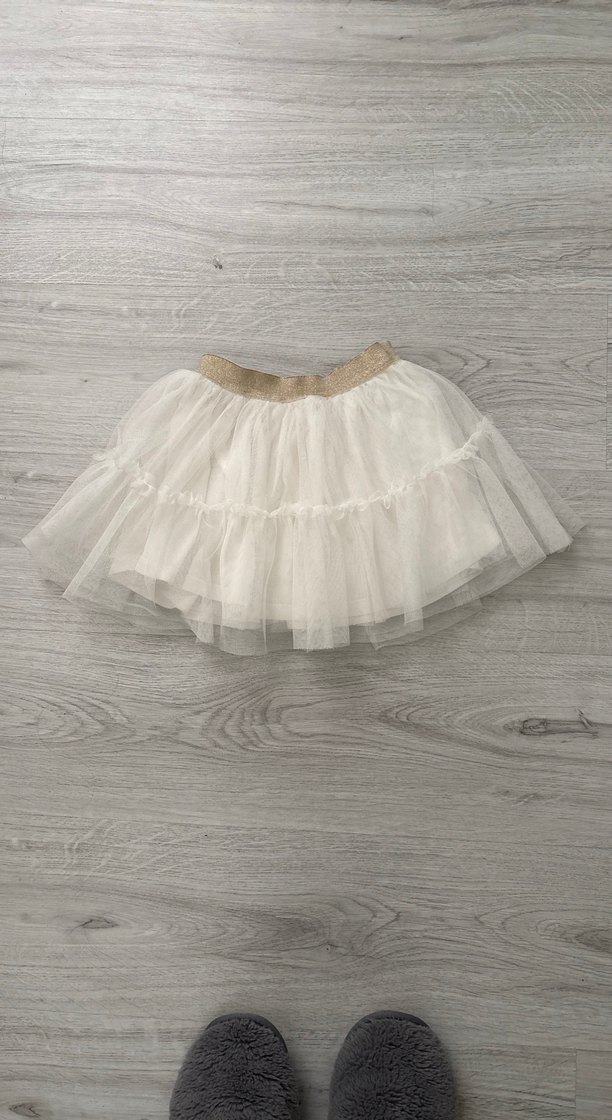 Kız çocukları için bol kesim, fırfırlı beyaz renkte etek. Yumuşak sentetik kumaştan yapılmış, bohem tarzda ve rahat lastikli bel bandına sahip. Astarı pamuklu
