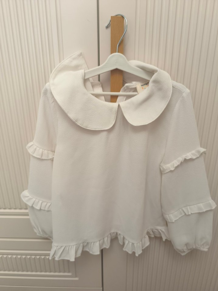 Kız Çocuk Beyaz Fırfırlı Keten Bluz