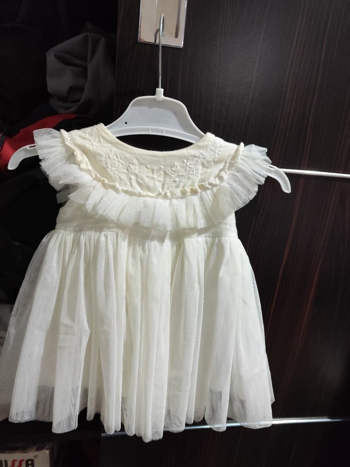 Kız Çocuk Beyaz Fırfırlı Nakışlı Elbise