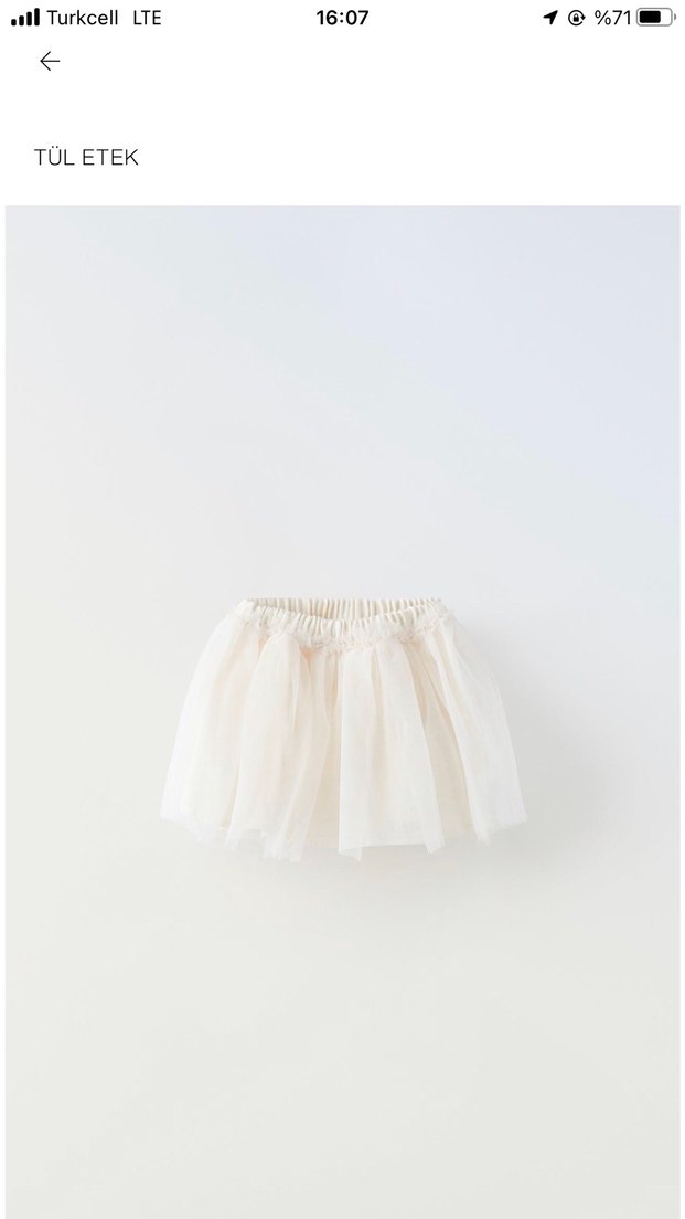 Pamuk kumaştan üretilmiş, tül detaylı tütü etek