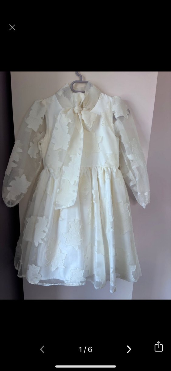 Kız Çocuk Beyaz Fırfırlı Uzun Kollu Elbise