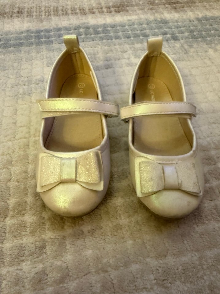Kız çocukları için beyaz renkte, modern klasik stilde, ön kısmında fiyonk detayı bulunan, lastik malzemeden yapılmış rahat bantlı babetler. 27 numara hiç bir sorunu yok