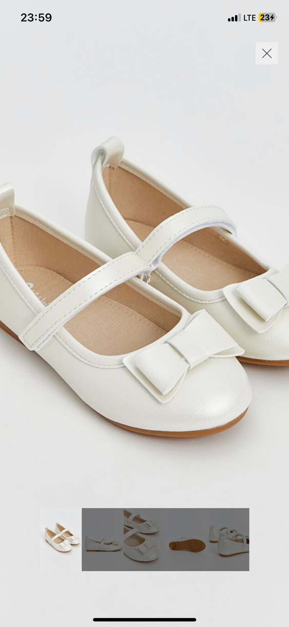 Kız çocuklar için beyaz renkte, fiyonk detaylı modern klasik babetler. Rahatlık için yumuşak kauçuk taban ve güvenli bant mevcuttur.