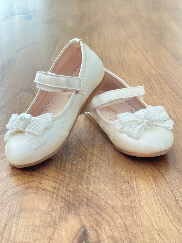 Kız Çocuk Beyaz Fiyonk Detaylı Babet