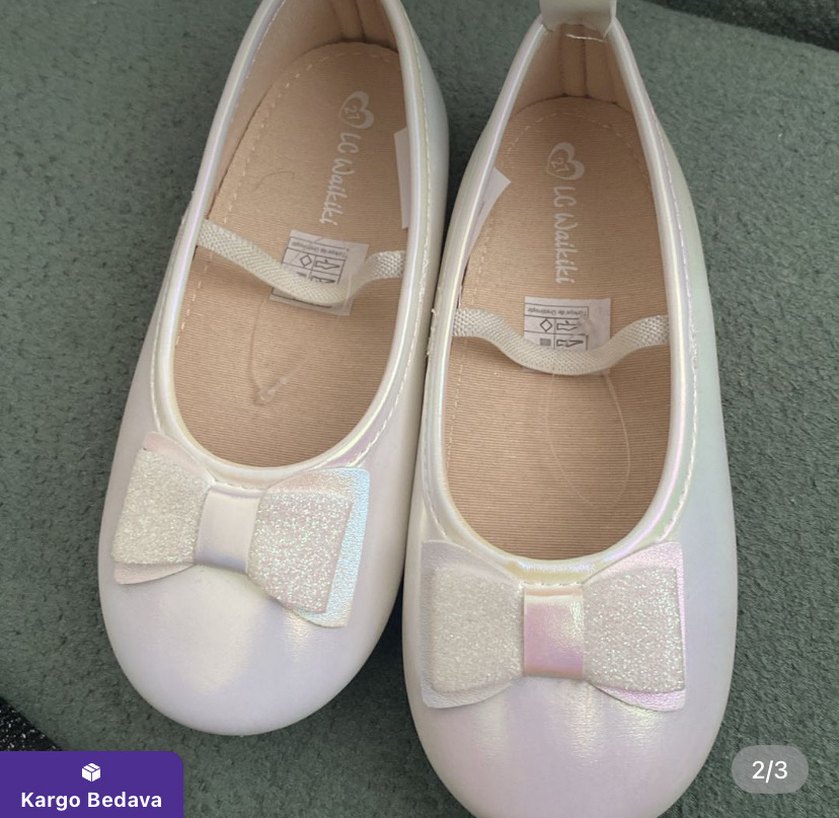 Kız çocukları için beyaz renkli, fiyonklu ve lastik malzemeden yapılmış modern klasik babetler. Şıklık ve rahatlık bir arada.