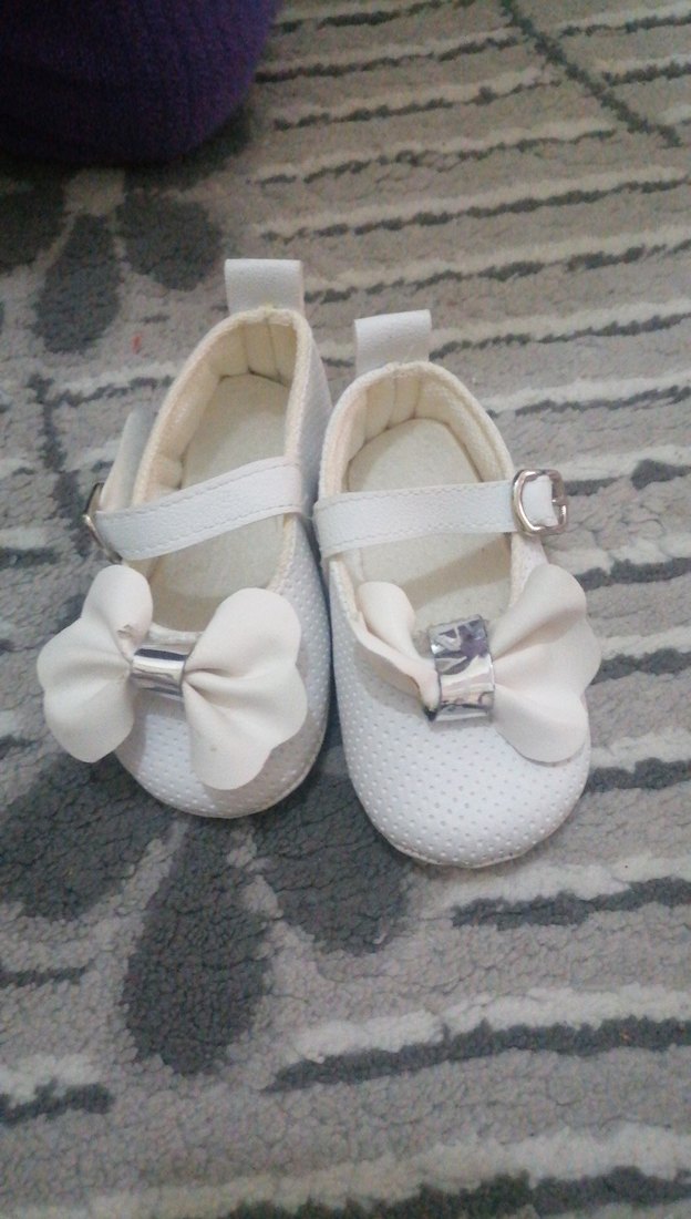 Beyaz renkli, fiyonklu kız çocuk babetleri. Kauçuk malzemeden üretilmiş, sade ve modern klasik tarza sahip.