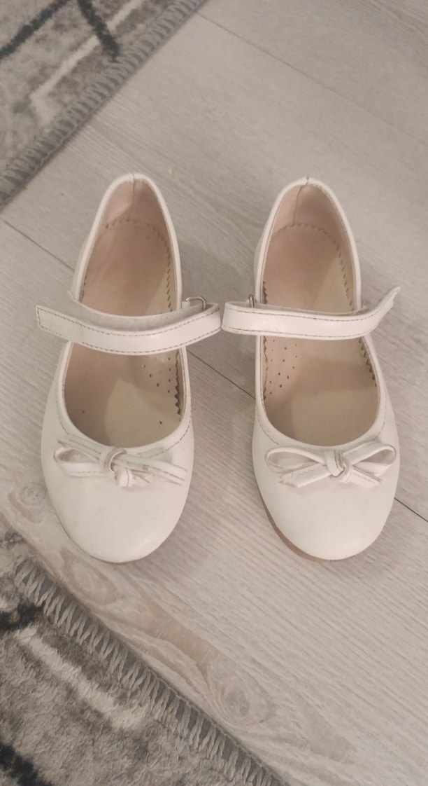 Beyaz kız çocuk babetleri, fiyonk detaylı ve bantlı, modern klasik tarzda, rahat kauçuk tabanlı. Günlük kullanım için uygundur. son fiyat