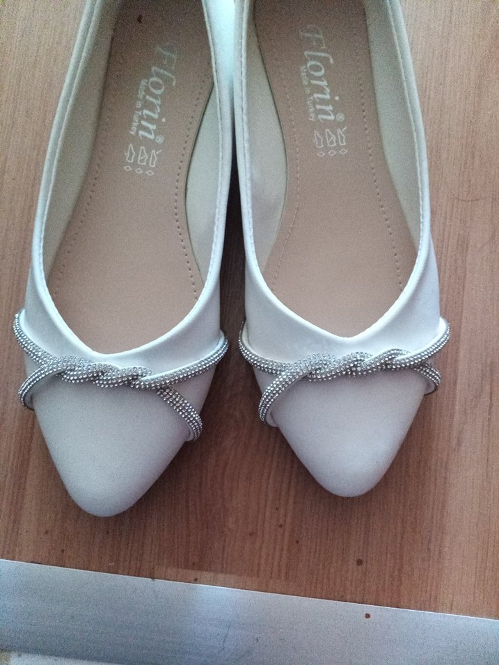Parlak beyaz kız çocuk babetleri, sentetik kumaş ve fiyonk detayına sahip klasik, desensiz tasarım.