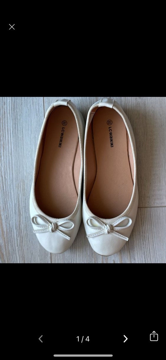 Kız çocuklar için beyaz, fiyonklu babet. Kauçuk malzemeden, desensiz ve pastel tonlarda, sade ve normcore tarzında. Marka: LC Waikiki.