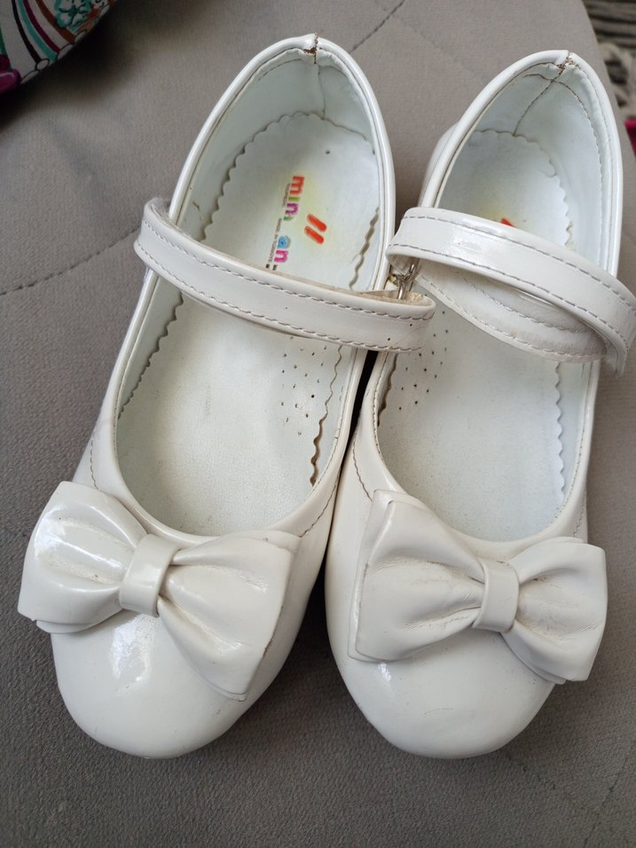 Kız çocukları için beyaz fiyonklu babet ayakkabılar, önünde fiyonk ve ayarlanabilir bant ile rahat kullanım sağlar. Kaymaz tabanlıdır.
