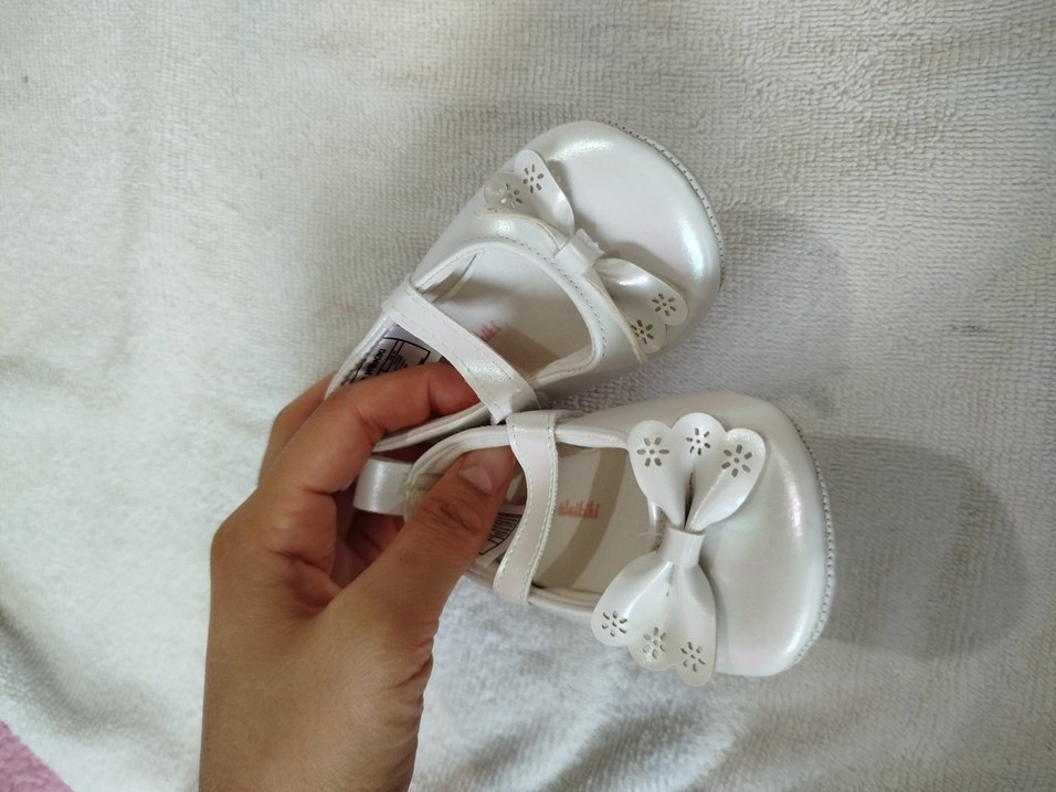 Kız çocukları için beyaz renkli, fiyonklu ve yumuşak kauçuk malzemeden yapılmış babet ayakkabı. Düz ve klasik tasarımlı, rahat bir kullanım sunar.