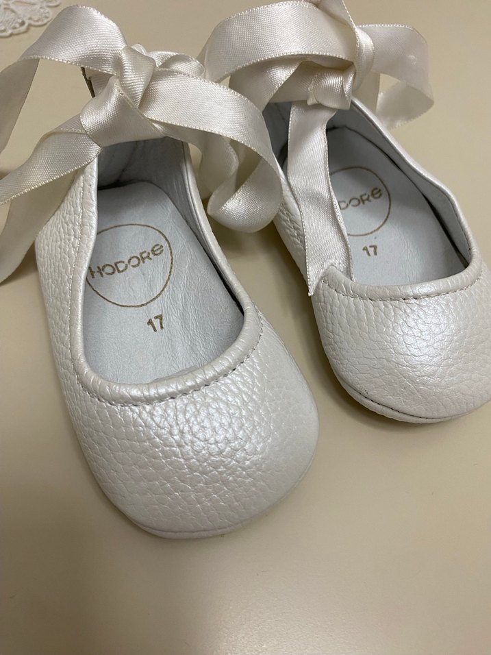 HODORE marka, 17 numara, beyaz, fiyonklu, yumuşak dokulu kız çocuk babet. 1 kere giyildi.