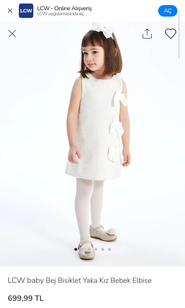 Kız Çocuk Beyaz Fiyonklu Elbise