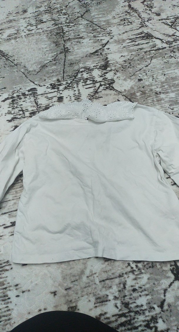 Beyaz keten kumaştan, düğmeli ve gömlek yaka kız çocuk bluzu. Uzun kollu, bol kesim ve sade tasarımlı. Sokak stiline uygun. engel olmayan iki küçük minik leke var 1 ay olmadı alalı nasıl oldu qnlamadim kreşte olmuş olmalı ben uğraşmadım belki siz gecirirsijiz