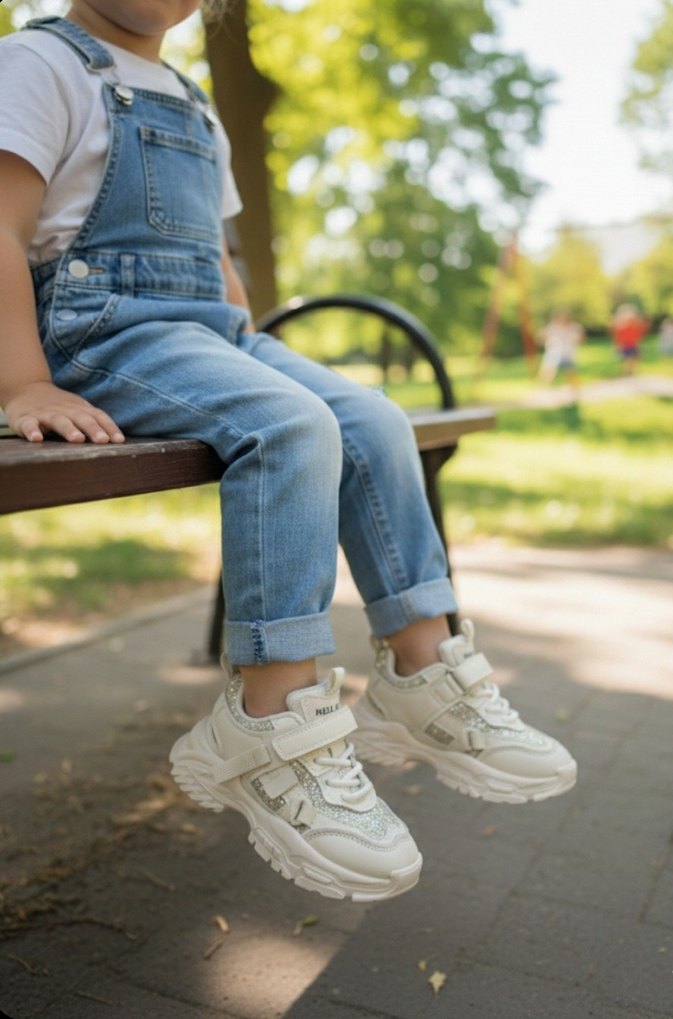 Kız Çocuk Beyaz Gri Bağcıklı Kot Spor Ayakkabı
