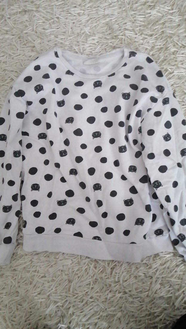 Çocuklar için uzun kollu, yuvarlak yaka ve bol kesim pamuklu örme sweatshirt. Beyaz zemin üzerine gri baskılı desenlerle rahat sokak stiline uygun. Günlük kullanım için ideal.